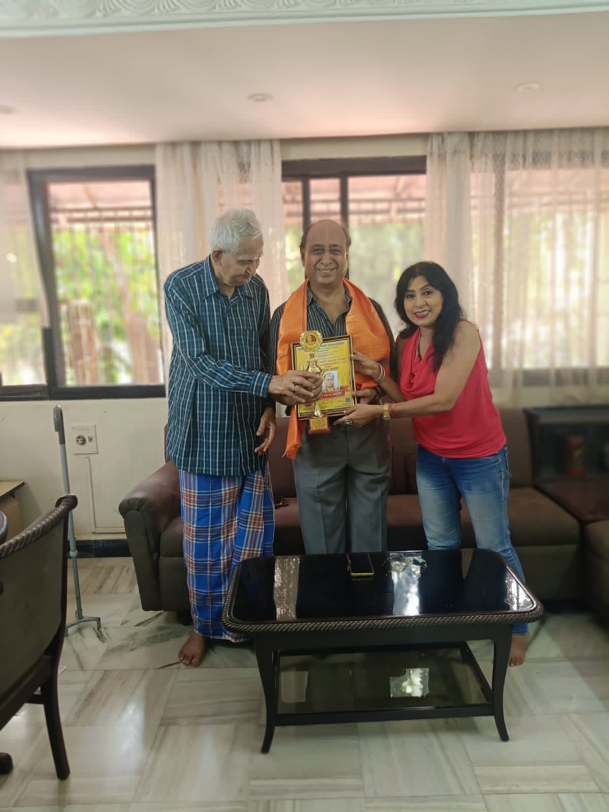 – डॉक्टर अजीत गांधी को उनके घर जाकर ” दादा साहेब फाल्के भारत गौरव सम्मान अवार्ड’ की ऑर्गनाइजर ,प्रोड्यूसर & डायरेक्टर राजश्री वर्मा जी ने ” दादा साहेब फाल्के भारत गौरव सम्मान अवार्ड 2025 ‘ से सम्मानित किया गया। जिस पर बॉलीवुड फिल्म रिपोर्टर गिरजा शंकर अग्रवाल ने ऑर्गनाइजर , डायरेक्टर,प्रोड्यूसर राजश्री वर्मा जी को सभी को सम्मानित किए जाने पर ढेर सारी शुभकामनाएं दीं। ऑर्गनाइजर राजश्री ने बताया, कि मै “दादा साहेब फाल्के भारत गौरव सम्मान अवार्ड’ की ऑर्गेनाइजर हूं । जिसके द्वारा मैंने अभी तक एक सौ ग्यारह इवेंट कर चुकी हूं । और मैं कैंसर पेशेंट, हैंडिकैप्ड तथा ब्लाइंड लोगों की सहायता के लिए इवेंट करती रहती हूं । और मैं बराबर ” दादा साहब फाल्के भारत गौरव सम्मान अवॉर्ड ‘ शो करती आ रही हूं।