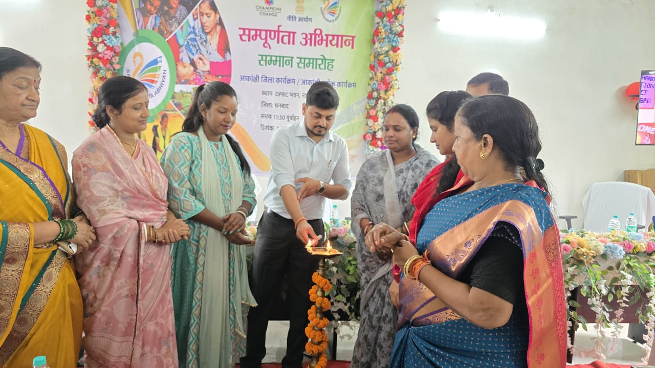 धनबाद । उपायुक्त सह जिला दंडाधिकारी आदित्य रंजन ने शनिवार को नावाडीह स्थित जिला पंचायत संसाधन केंद्र (डीपीआरसी) भवन में नीति आयोग, नई दिल्ली, द्वारा संचालित “संपूर्णता अभियान सम्मान समारोह” के समापन पर आयोजित कार्यक्रम में कहा कि जिले का केवल गोविंदपुर आकांक्षी ब्लॉक नहीं बल्कि भारत के मानचित्र पर पूरा धनबाद आकांक्षी जिला बनकर उभरना चाहिए।