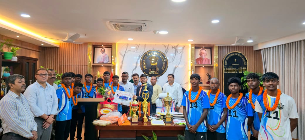 धनबाद । उपायुक्त सह जिला दंडाधिकारी आदित्य रंजन ने 64वीं राज्य स्तरीय सुब्रतो कप फुटबॉल प्रतियोगिता में स्टेट चैंपियन बनी धनबाद की टीम को सम्मानित किया।