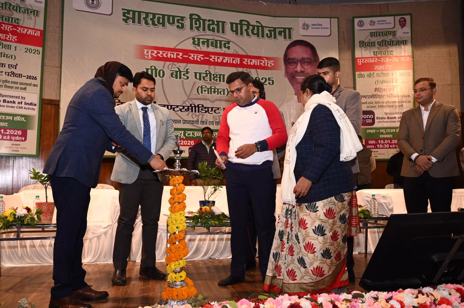 धनबाद । मैट्रिक एवं इंटरमीडिएट के वार्षिक परीक्षा 2026 की तैयारी के निमित्त जिले में उपायुक्त आदित्य रंजन के निर्देशानुसार प्री बोर्ड के परीक्षा के आयोजन किया गया था। जिसमें प्रथम द्वितीय एवं तृतीय स्थान प्राप्त करने वाले छात्र-छात्राओं को मोटिवेट करने एवं शेष सभी विद्यालयों का परिणाम अनुकूल प्राप्त करने के उद्देश्य से न्यू टाउन हॉल में पुरस्कृत करने हेतु पुरस्कार सह सम्मान समारोह कार्यक्रम आयोजित किया गया।
