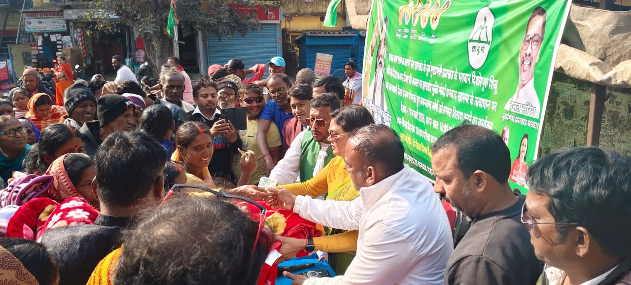 धनबाद। झरिया विधानसभा अंतर्गत डिगवाडीह राम परीखा सुपर मार्केट के प्रांगण में झारखंड अलग राज्य के अग्रणी नेता सह झारखंड के पूर्व मुख्यमंत्री दिशोम गुरु शिबू सोरेन का 82वां जन्मदिवस के अवसर पर झारखंड मुक्ति मोर्चा धनबाद महानगर के तत्वाधान में लोक कल्याणकारी दिवस के रूप में मनाते हुए जरूरतमंद लोगों को कम्बल का वितरण किया गया।कार्यक्रम की अध्यक्षता धनबाद महानगर के उपाध्यक्ष मदन राम तथा संचालन संगठन सचिव शिव कुमार यादव ने किया।कार्यक्रम में मुख्य अतिथि के रूप में झारखंड मुक्ति मोर्चा के केंद्रीय मीडिया पैनलिस्ट डॉक्टर नीलम मिश्रा उपस्थित रहीं। डॉ नीलम मिश्रा ने अपनी बातें रखते हुए कहा कि केंद्र सरकार झारखंड के साथ सौतेला व्यवहार कर रहीं हैं। झारखंड में केंद्र द्वारा विकास के कार्य को रोका गया है। उसे जनता माफ नहीं करेगी।मदन राम ने अपनी बात रखते हुए कहा कि वर्तमान में धनबाद सांसद तथा झरिया विधायक भाजपा से है।जिन्हें यहां की जनता को कड़कती ठंड को देखते हुए कंबल वितरण करने का काम करना चाहिए था,परंतु आज झारखंड मुक्ति मोर्चा के कर्मठ कार्यकर्ताओं ने यह कार्य किया हैं।कार्यकर्ताओं द्वारा झारखंड सरकार की हर योजनाओं को जन-जन तक पहुंचाने का काम करेंगे।कार्यक्रम में मुख्य रूप से दिव्यांग बोर्ड के सदस्य हारून रशीद,महानगर संगठन सचिव आशीष सिन्हा,महानगर संगठन सचिव कुणाल चंद्रवंशी,उपाध्यक्ष राजू प्रमाणिक,संगठन सचिव सुधीर यादव,संगठन सचिव राजेश तुरी, झरिया नगर अध्यक्ष फरीद मलिक,नगर सचिव दिलीप रवानी,संगठन सचिव जोगिंदर हरि, उपाध्यक्ष जाहिद शेख,इम्तियाज अंसारी,गौतम हरि,भगवान सिंह,मनीष कुमार,बोलाई सिंह,जसीम अंसारी,महेंद्र कुमार,रोहित कुमार,राजा तुरी, पिंटू गुप्ता,इम्तियाज अंसारी,साहब शेख,जाहिद शेख,प्रीतम कुमार,अनिल गुप्ता, आदित्य नारायण,शमशाद,अजय पासवान, गौरी शंकर,किशोर रवानी,कार्तिक तिवारी,सद्दाम खान, अरमान, पिंटू,गुप्ता,फागुन रवानी,वीरेंद्र कुशवाहा,दिलीप रवानी,मुन्ना खान,निवारण नापित, कार्तिक तिवारी,सद्दाम खान,महफूज आलम,राजू पंडित,वीरेंद्र कुशवाहा,शमशाद अंसारी,अनवर अंसारी,मनीष सिंह एवं अन्य मौजूद रहें।