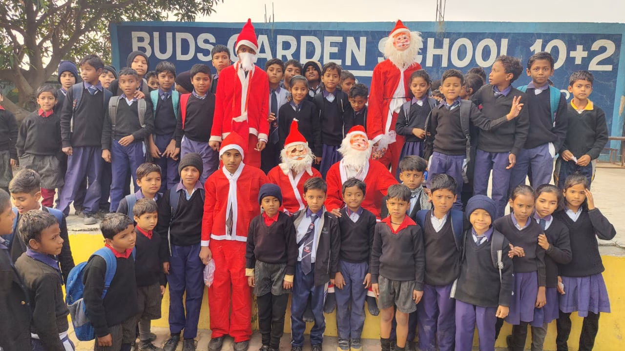 राजगंज । क्रिसमस के शुभ अवसर पर बड्स गार्डेन स्कूल दलूडीह राजगंज में क्रिसमस डे काफी धूमधाम से मनाया गया। जिसमें सांता क्लोज आकर विद्यालय में सभी बच्चों से हाथ मिलाए एवं सभी बच्चों को टोफिंया और उपहार देकर उन्हें खुश किया।