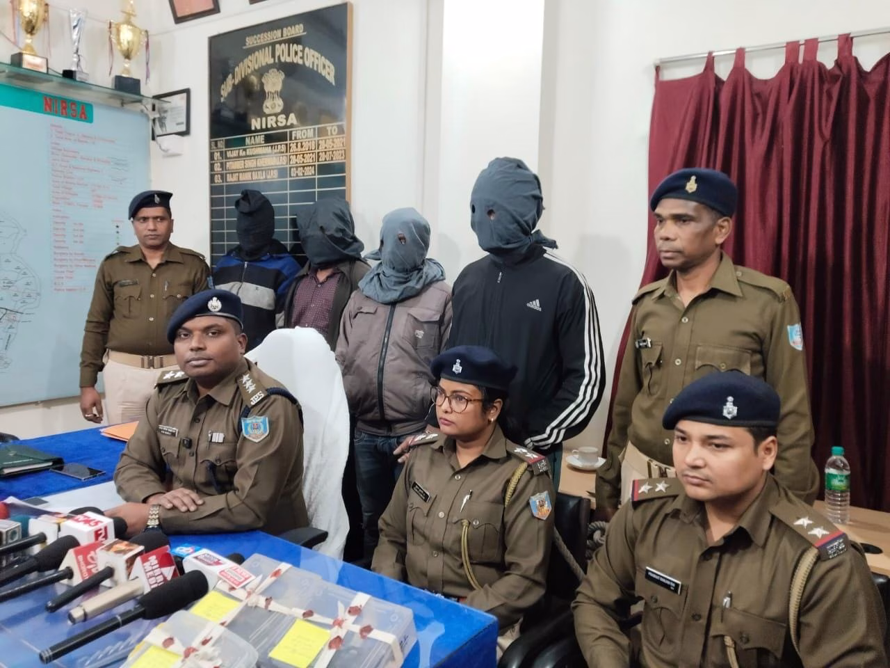 निरसा । धनबाद वरीय पुलिस अधीक्षक को गुप्त सूचना प्राप्त हुई कि पांच से छः अपराधी किस्म के व्यक्ति अवैध हथियार के साथ किसी अप्रिय घटना को अंजाम देने हेतु नीलकुटी मोड़ के पास एकत्रित होने वाले हैं। तत्पश्चात् वरीय पुलिस अधीक्षक के निर्देशानुसार निरसा अनुमंडल पुलिस पदाधिकारी के नेतृत्व में एक छापामारी दल का गठन किया गया। छापामारी दल नीलकुटी मोड़ के पास पहुँची तो पाया कि तीन मोटरसाइकिल खड़ा कर पांच व्यक्ति योजना बना रहे हैं। पुलिस गाड़ी को देखते ही सभी पाँचो व्यक्ति मोटरसाइकिल छोड़ कर भागने लगे, जिसमें से चार व्यक्ति को छापामारी दल द्वारा खदेड़ कर पकड़ लिया गया तथा एक व्यक्ति अंधेरा का लाभ उठाकर भागने में सफल रहा।पकड़ाये व्यक्ति को बारी-बारी से उसका नाम, पता पूछे जाने पर उनलोगों ने अपना-अपना नाम शेख हाजीरूल, शेख दिलावर, सद्दाम अंसारी उर्फ भोलू, शेख आरिफ बताया। चारो अपराधकर्मी एमपीएल ओपी क्षेत्र अंतर्गत मदनपुर के रहने वाले हैं।भागने में सफल रहा व्यक्ति का नाम शेख डालिम हैं।वह भी एमपीएल ओपी क्षेत्र अंतर्गत मदनपुर का निवासी हैं।लेकिन, उसका स्थाई पता वीरभूम (पश्चिम बंगाल) बताया गया। पकड़ाये व्यक्ति की तलाशी के क्रम में शेख हाजीरूल उर्फ हाजीरूल के बांये कमर में खोसा हुआ एक देशी लोडेड पिस्टल, जिसके मैगजीन में दो अदद जिंदा कारतुस था तथा इनका पहना हुआ पैंट के दाहिनी पॉकेट से एक मोबाइल मिला। सद्दान अंसारी उर्फ भोलू के बायें कमर में खोसा हुआ एक देशी पिस्टल, जिसके मैगजीन में दो जिंदा कारतुस तथा पहना हुआ पैंट के बायें पीकेट से एक खाली मैगजीन मिला। शेख आरिफ के पॉकेट से एक जियो भारत लिखा हुआ नीले रंग का कीपैड फोन बरामद हुआ। बरामद आग्नेयास्त्र, कारतुस एवं मोटरसाइकिल के बारे में पूछने पर उपरोक्त चारों व्यक्तियों द्वारा न तो कोई वैध कागजात प्रस्तुत किया गया और न ही कोई संतोषजनक जवाब दिया गया। उसके उपरांत चार मोटरसाइकिल एवं आग्नेयास्त्र तथा कारतुस तथा मोबाइल को विधिवत् जब्त किया गया। पूछताछ में पकड़ाये व्यक्तियों ने बताया कि वे लोग निरसा में किसी पेट्रोल पंप में लूटपाट करने की योजना बना रहे थे।