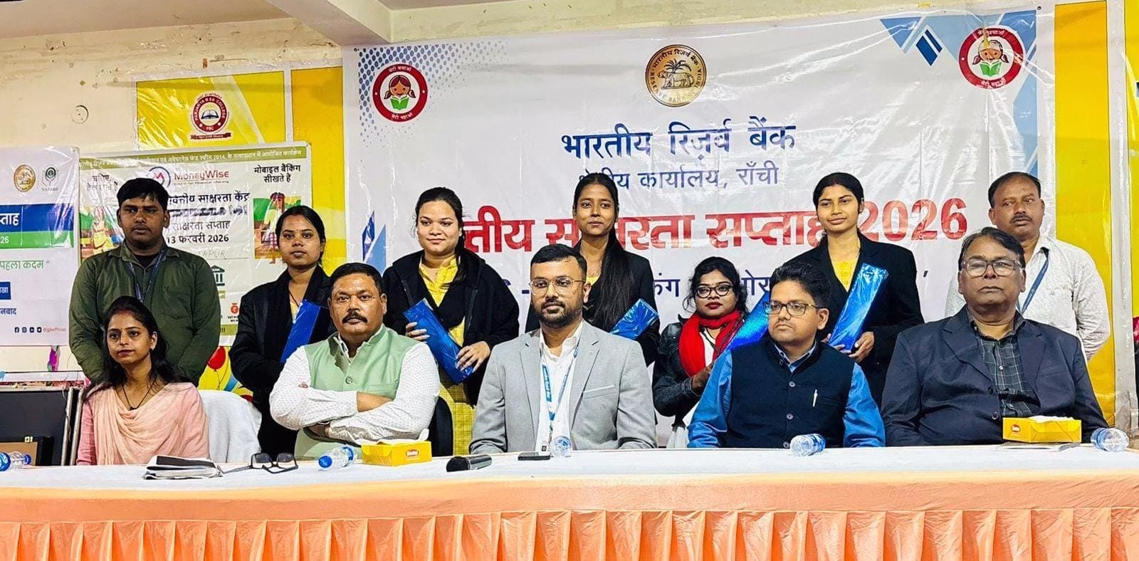 धनबाद । भारतीय रिजर्व बैंक के तत्वावधान में मनाए जा रहे वित्तीय साक्षरता सप्ताह 2026 के अवसर पर 13 फरवरी 2026 को पर्जन्य बी एड कॉलेज, बलियापुर, धनबाद में जिला स्तरीय मेगा वित्तीय साक्षरता शिविर का आयोजन अग्रणी जिला प्रबंधक धनबाद अमित कुमार के द्वारा किया गया। कार्यक्रम का मुख्य उद्देश्य आम जनता को केवाइसी एवं सुरक्षित बैंकिंग के प्रति जागरूक करना रहा।