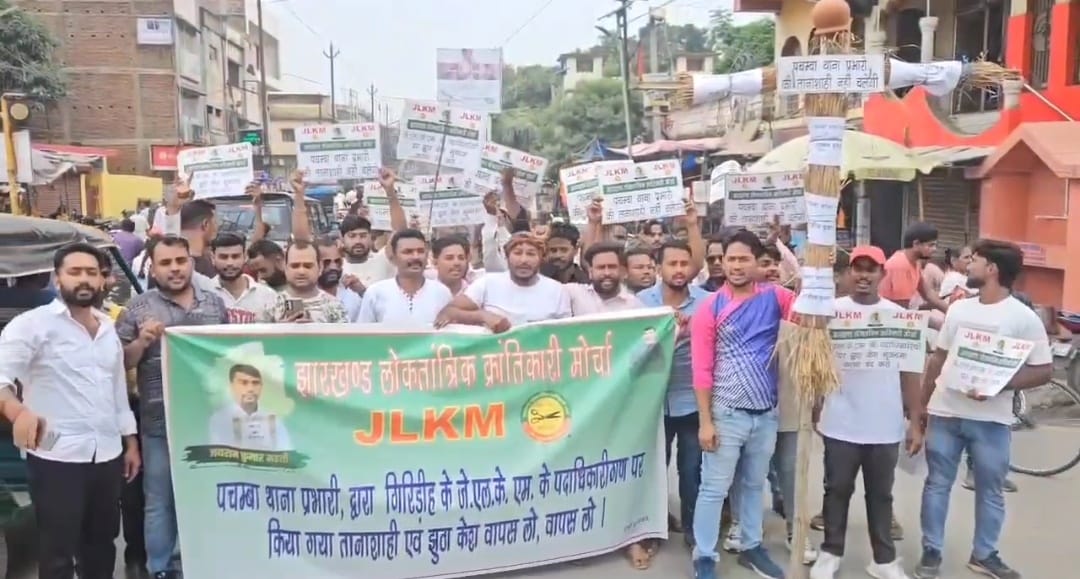 विरोध मार्च का नेतृत्व जेएलकेएम के शहरी जिलाध्यक्ष सलमान अंसारी ने किया। प्रदर्शन में ग्रामीण जिलाध्यक्ष रॉकी नवल, केंद्रीय उपाध्यक्ष शेख शहीद, जमुआ के पूर्व प्रत्याशी रोहित दास समेत बड़ी संख्या में पार्टी कार्यकर्ता शामिल हुए।