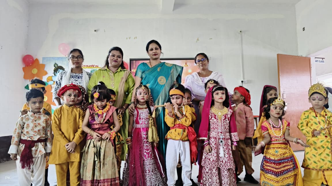 धनबाद । ग्लोबल स्कूल ऑफ इंडिया के प्रांगण में कक्षा नर्सरी, एलकेजी, यूकेजी के बच्चों में कृष्णा और राधा के रूप में सज कर पूरे वातावरण को कृष्ण राधामय कर दिया। बाल कृष्ण और बाल राधा के रूप में सजे हुए बच्चों ने पूरे आत्मविश्वास के साथ नृत्य किया और रैंप वॉक पर अपनी प्रस्तुति दी। कई बच्चों ने छोटे – छोटे कृष्ण लीलाए भी प्रस्तुत की।