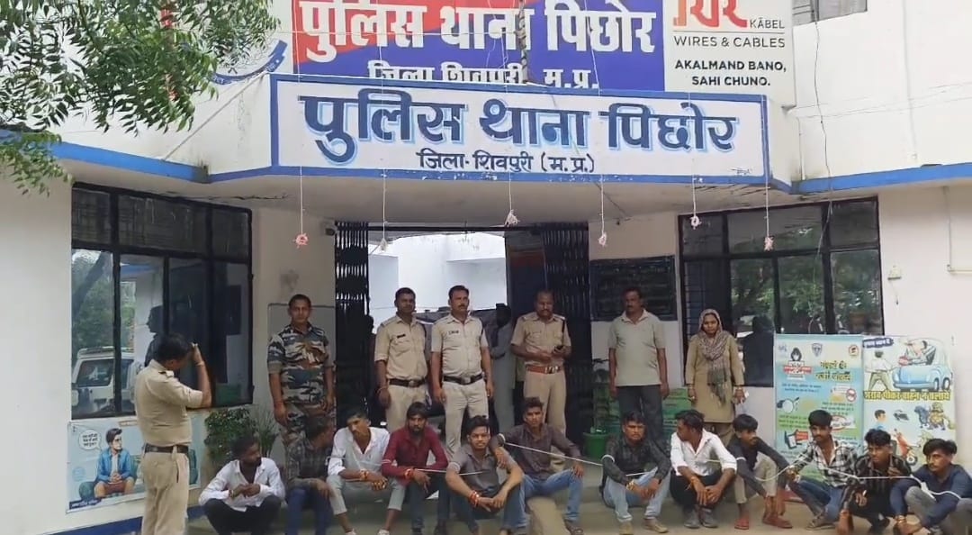 शिवपुरी (म.प्र) । शिवपुरी जिले के पिछोर थाना क्षेत्र में श्रावण मेला महोत्सव में आर्केस्ट्रा कार्यक्रम के दौरान कुछ युवक आपस में झगड़ा और मारपीट करते देखे गए युवक रात काफी देर तक हंगामा भी करते रहे। पुलिस ने ऐसे लगभग 13 आरोपियों को गिरफ्तार कर जेल भेजने की कार्रवाई की है।