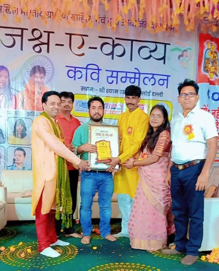 कतरास (धनबाद) । अखिल भारतीय ग्रामीण साहित्य मंच द्वारा दिल्ली के नागलोई में आयोजित जश्न-ए-काव्य अखिल भारतीय कवि सम्मेलन में कतरास (धनबाद) के उभरते कवि सचिन सिन्हा को गौरव सम्मान मिला।उन्हें अंग वस्त्र व मोमेंटो देकर सम्मानित किया।सम्मेलन में झारखंड, बिहार,छत्तीसगढ़, उत्तर प्रदेश, मध्य प्रदेश, राजस्थान, दिल्ली, हरियाणा,पश्चिम बंगाल आदि राज्यों से 100 से अधिक प्रतिष्ठित कवि एवं साहित्यकारों ने भाग लिया।सचिन सिन्हा की कविताओं में मूल रूप से सामाजिक चेतना देखने को मिलती है।सम्मान उन्हें आयोजनकर्ता रंजन शर्मा, काव्या पटेल, अंकुर अग्रवाल, कृष्णा बघेल आदि ने संयुक्त रूप से दिया।