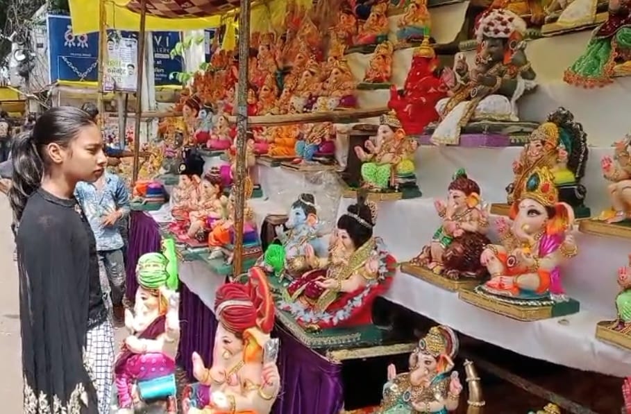 गणेश उत्सव को लेकर बाजार में खरीदारी करने लोगों की लगी भीड