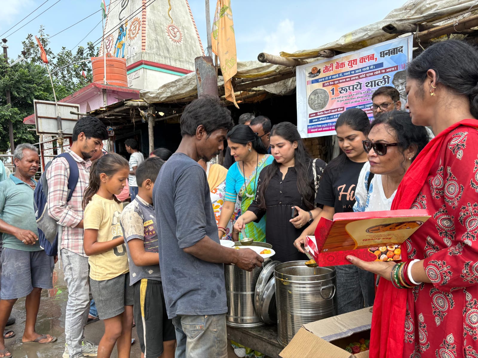 धनबाद । पवित्र महालय के शुभ अवसर पर रोटी बैंक यूथ क्लब धनबाद ने आज ‘₹1 थाली’ अभियान की शुरुआत की। इस अभियान के अंतर्गत प्रतिदिन बिनोद बिहारी चौक पर ज़रूरतमंदों को मात्र एक रुपये में संपूर्ण भोजन थाली उपलब्ध कराई जाएगी।