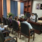 धनबाद : गुरुवार को नेशनल इंस्टीट्यूट ऑफ फैशन टेक्नोलॉजी, दिल्ली के छात्र-छात्राएं उपायुक्त सह जिला दंडाधिकारी आदित्य रंजन से मिलने उनके कार्यकाल कक्ष पहुचें। इस दौरान नेशनल इंस्टीट्यूट ऑफ फैशन टेक्नोलॉजी, दिल्ली के प्रोफेसर भी मौजूद थे।